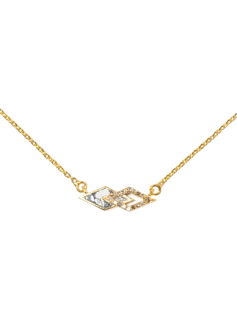 Introducing the Shana Gulati Mika Pendant Necklace. Half sliced diamonds, half pavé champagne sparkle, this stunning necklace plays with contrast in all the right ways. Set in rich 18K gold vermeil, the Mika pendant captures beauty in both shadow and shine. Key features of this necklace include: