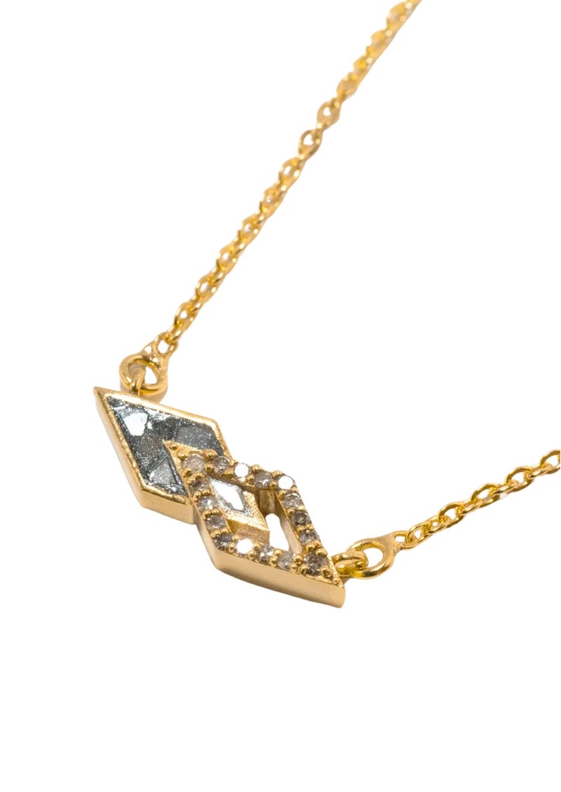 This Shana Gulati necklace is made from Sliced raw uncut diamonds, Steel resin, Pave champagne diamonds, Vermeil 18K gold.