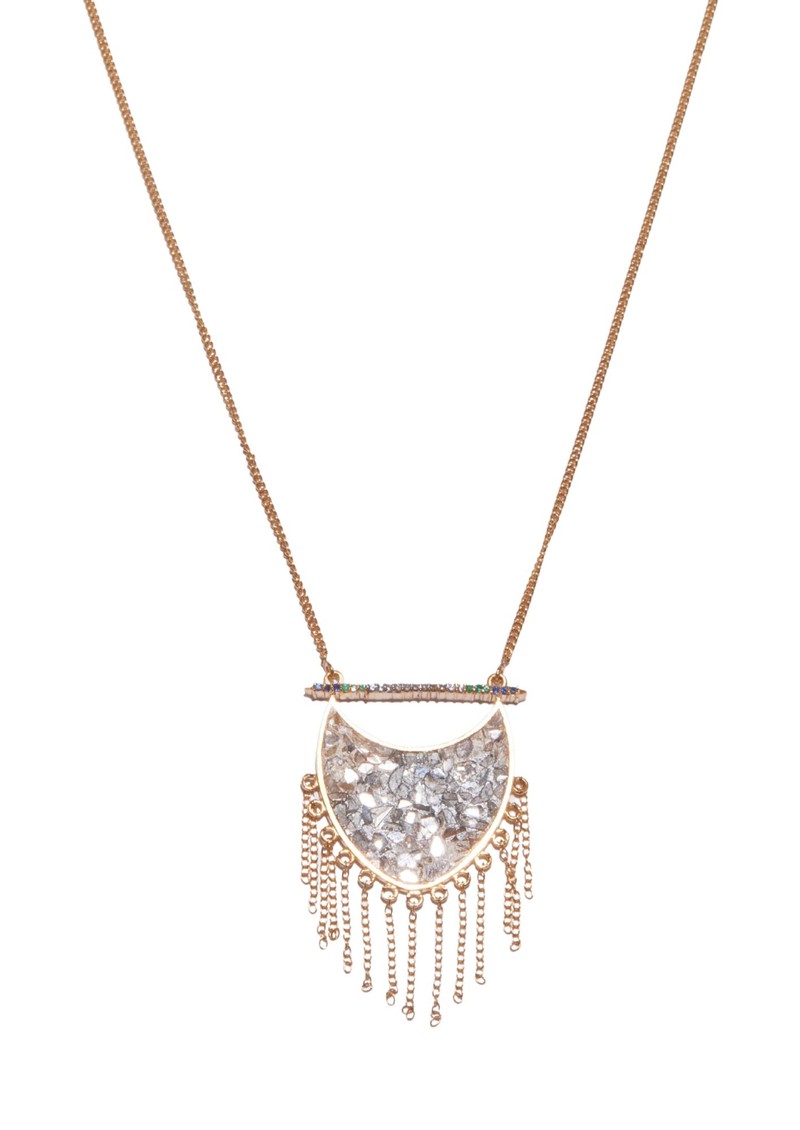This Shana Gulati necklace is made from Sliced raw uncut diamonds, Grey ombre resin, Pave champagne diamonds, Vermeil 18k gold
