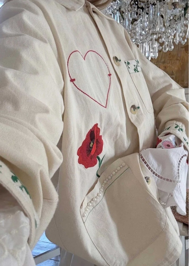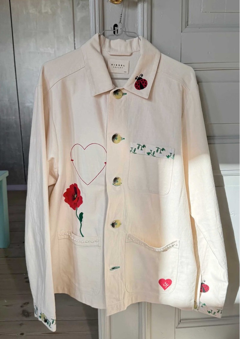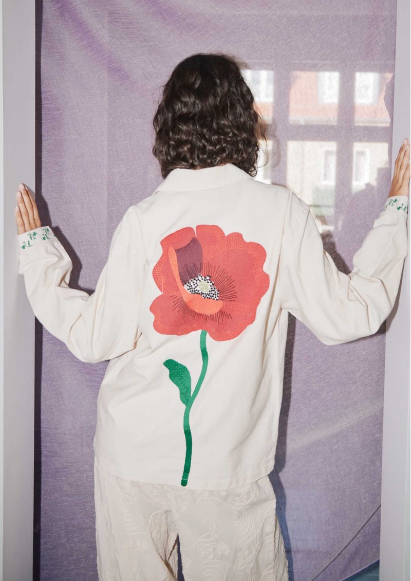 Meet the Sissel Edelbo Bea Jacket in soft beige-an effortlessly cool layer crafted from 100% organic cotton with a relaxed, easy fit. Finished with delicate embroidery, pearl bead details, and a statement poppy motif on the back, it blends artisanal charm with everyday wearability.