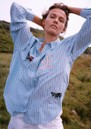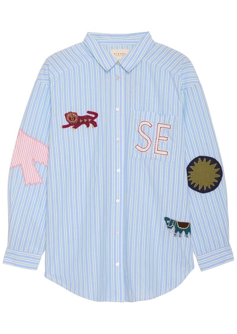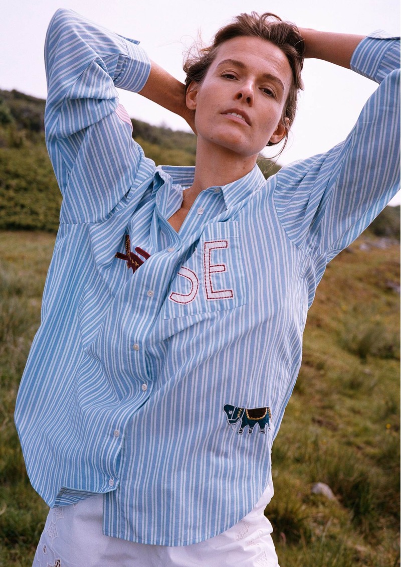 Say hello to new brand Sissel Edelbo and the gorgeous Pil Shirt which has been lovinly created using left over cotton fabric. This shirt features a straight fit, classic collar and front button placket. Designed with a blue, white and green stripe, its decorated with charming motifs and delicate embroidery. Other features include: