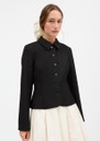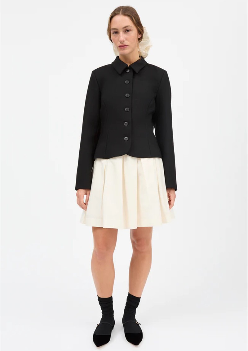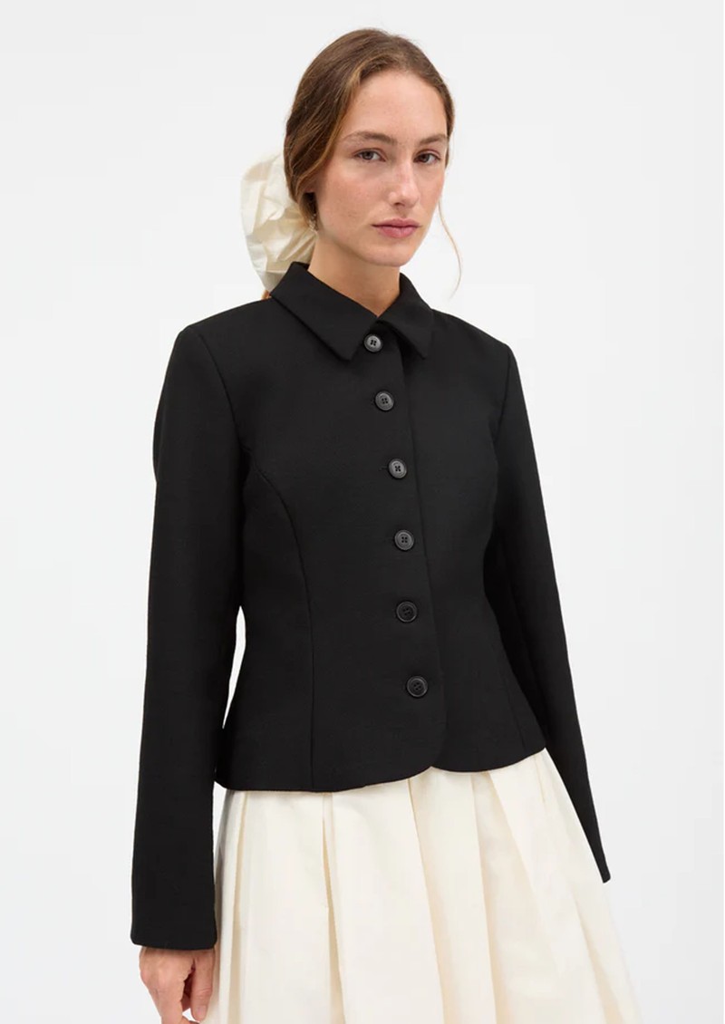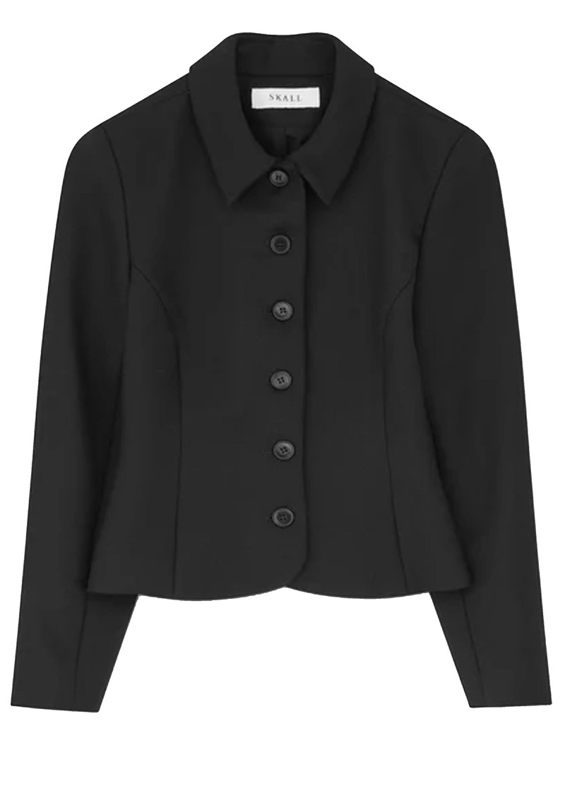 The Skall Ari Jacket is a fitted, tailored piece with a classic shirt-style collar, long sleeves, and six-button closure, offering a sleek and polished silhouette. Crafted from 100% wool, it combines timeless elegance with cosy, wearable sophistication.