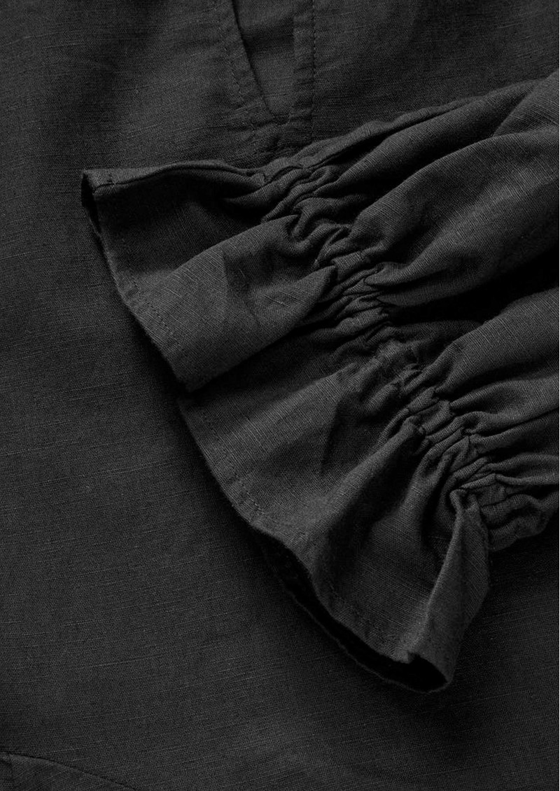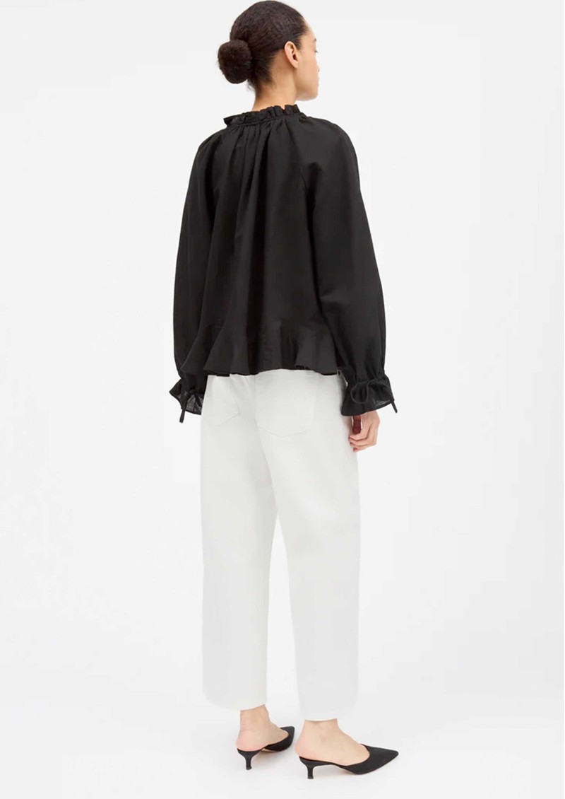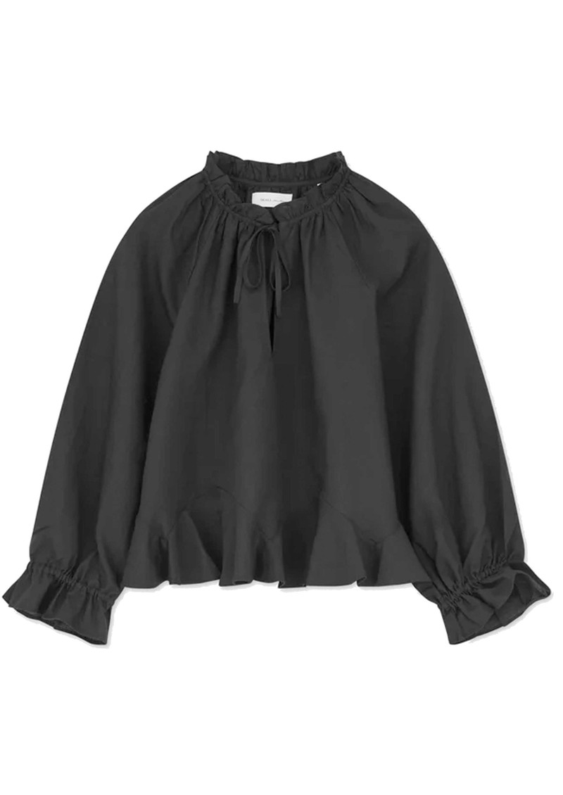 Add a touch of romance to your wardrobe with the Skall Benedette Blouse in black, featuring a delicate ruffle collar with tie, and feminine ruffles along the cuffs and hem. Crafted from a soft linen and organic cotton blend, it’s a graceful, versatile piece for effortless style.
