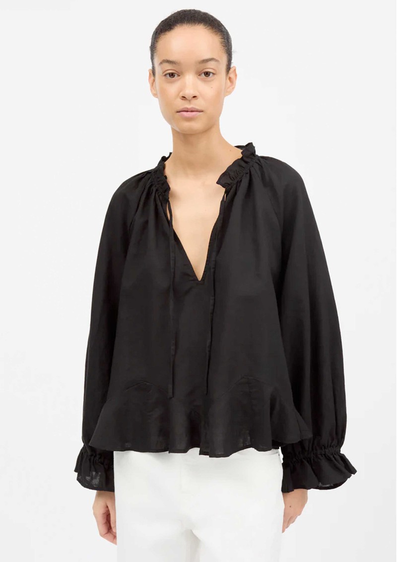 SKALL Benedette Linen Blend Blouse - Black