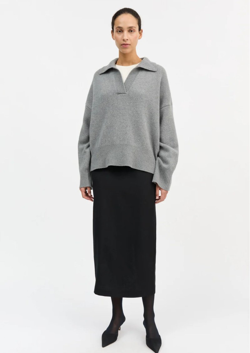 SKALL Dean V-Neck Merino Wool Jumper - Grey Melange