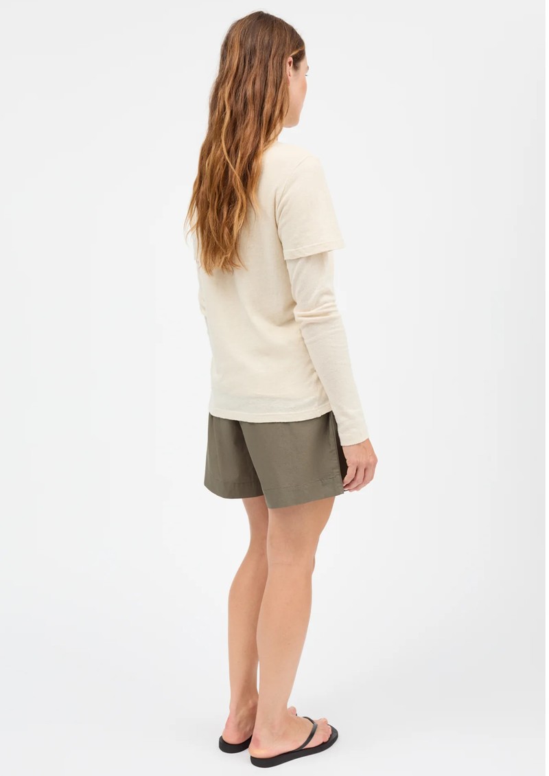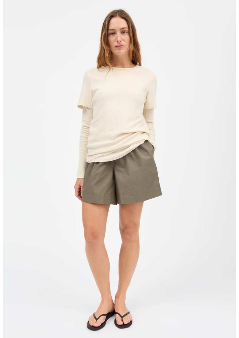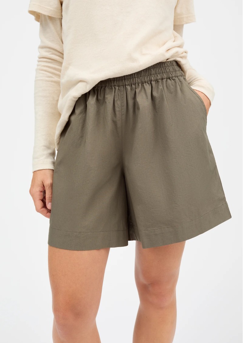 The Skall Edgar shorts in Khaki are made from soft organic cotton poplin, offering a comfortable, breathable fit with a laid-back vibe. Their relaxed shape, elasticated waistband, and handy side pockets make them ideal for everyday wear or relaxed weekend styling.