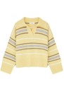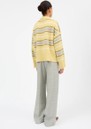 The Skall Paul V-Neck Jumper is a relaxed, striped sweater in 100% merino wool, featuring a softly overlapping V-neck, wide single-layer ribbed collar, and dropped shoulders for effortless style. Finished with deep rib cuffs and hem, and a subtle raglan sleeve detail at the back, it offers a laid-back, oversized silhouette crafted in Italy.