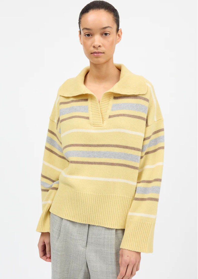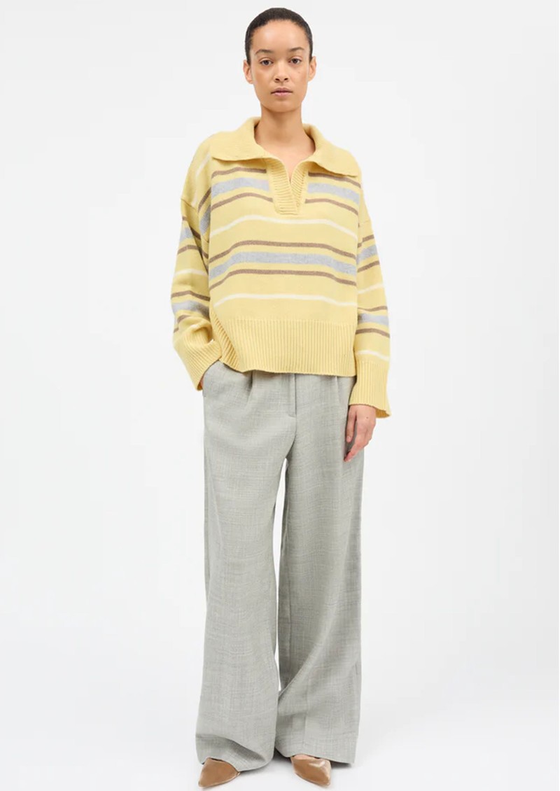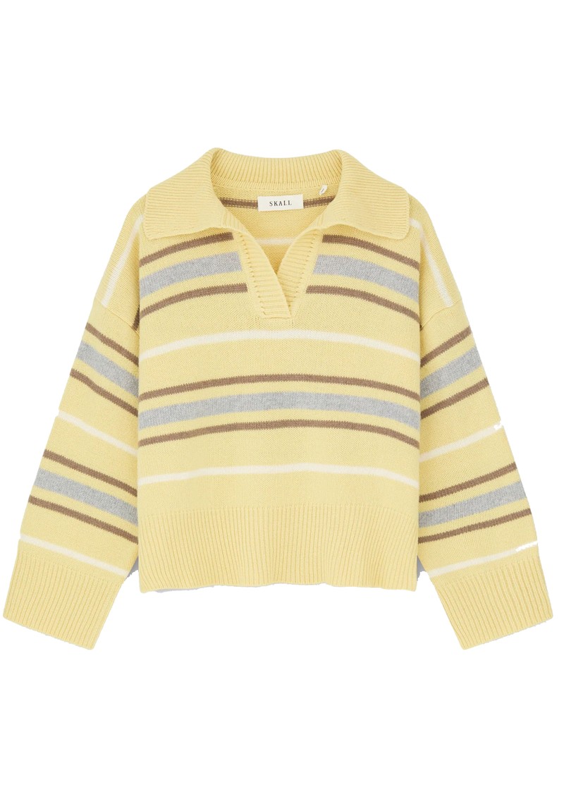 SKALL Paul V Neck Merino Wool Jumper - Yellow/Grey