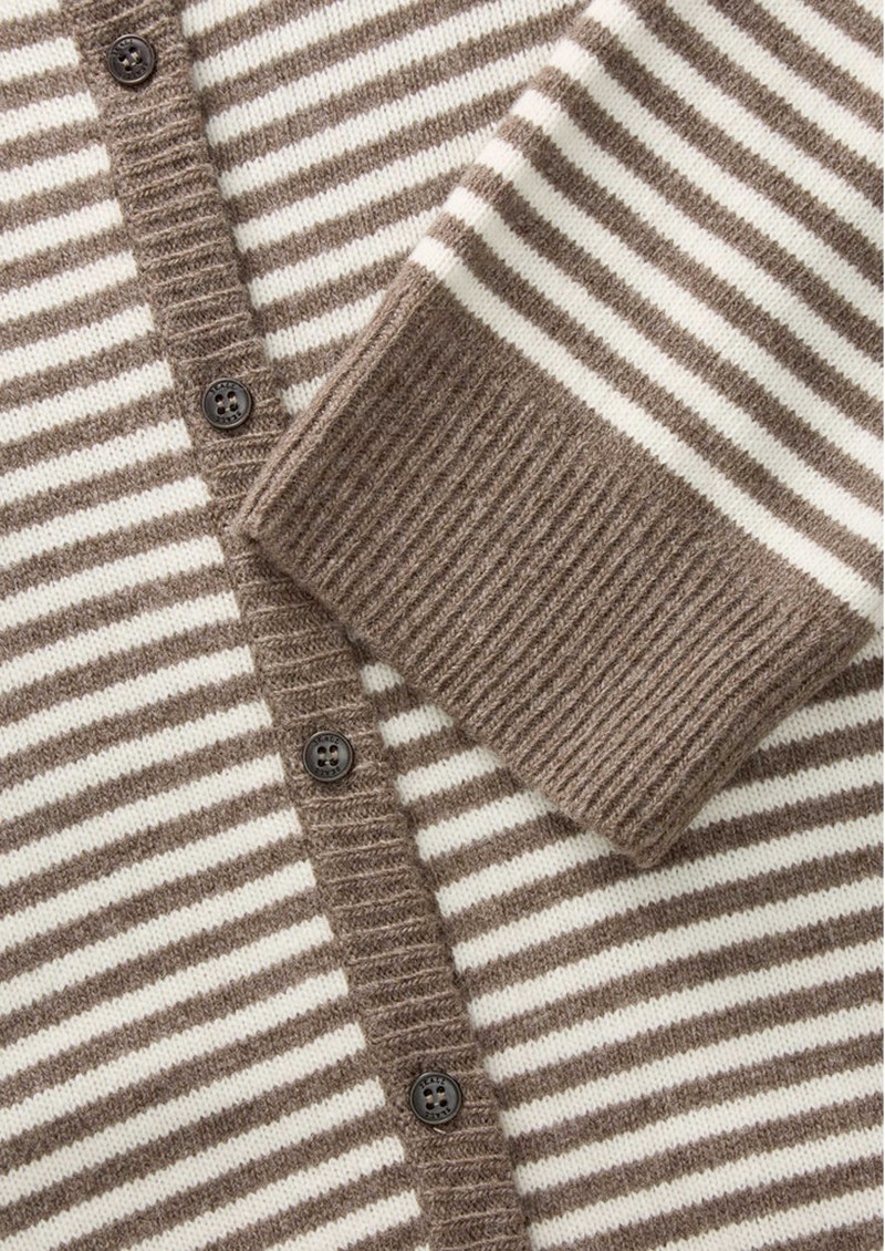 The Skall Studio Senna cardigan is a timeless striped knit designed to bring effortless style and everyday comfort to your wardrobe. Crafted from soft, breathable merino wool with a classic round neck and regular fit, it’s a refined staple made with lasting quality in Italy.