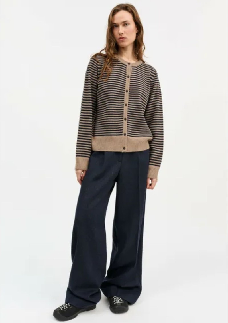 Say hello to the Senna Cardigan from Skall. The Senna cardigan is right on trend with it's light brown colourway and nautical themed stripes. Crafted from merino wool makes it super soft and cosy for the upcoming season.