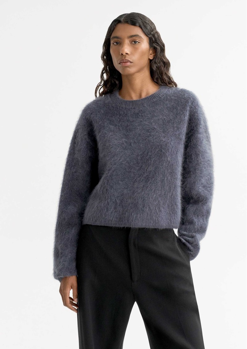 The Soft Goat Brushed Crewneck in midnight plum delivers a plush, cloud-soft feel thanks to its 100% brushed cashmere design. With its cosy texture, long sleeves, and clean crew neckline, it brings an elevated touch to everyday dressing.