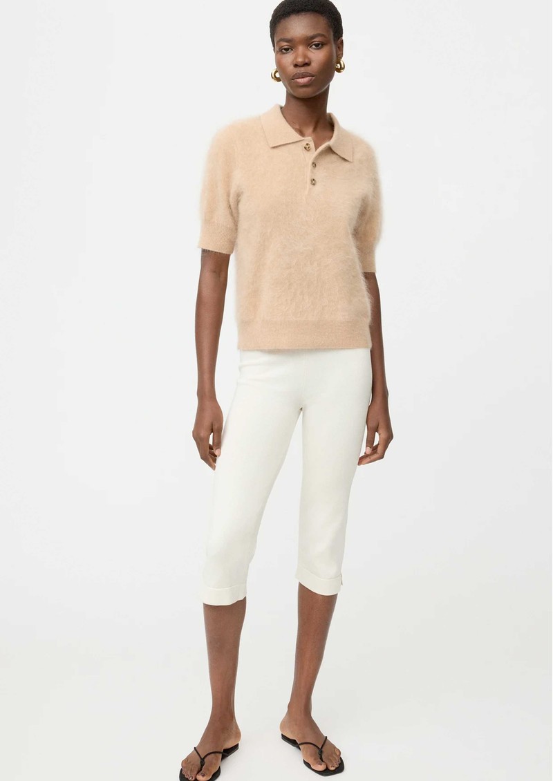 This Soft Goat brushed piqué knit is crafted from 100% cashmere, offering exceptional softness with a refined, textured finish. Designed in a classic polo shape with a pointed collar and short sleeves, it comes in a timeless camel hue for effortless, everyday polish.