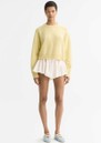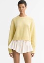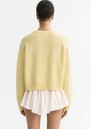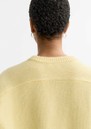 Soft Goat’s cashmere top features a relaxed silhouette, ribbed edges, and a soft, cosy texture for luxurious everyday wear. The honeydew hue, crewneck shape, and short length make it perfect for layering or styling on its own.