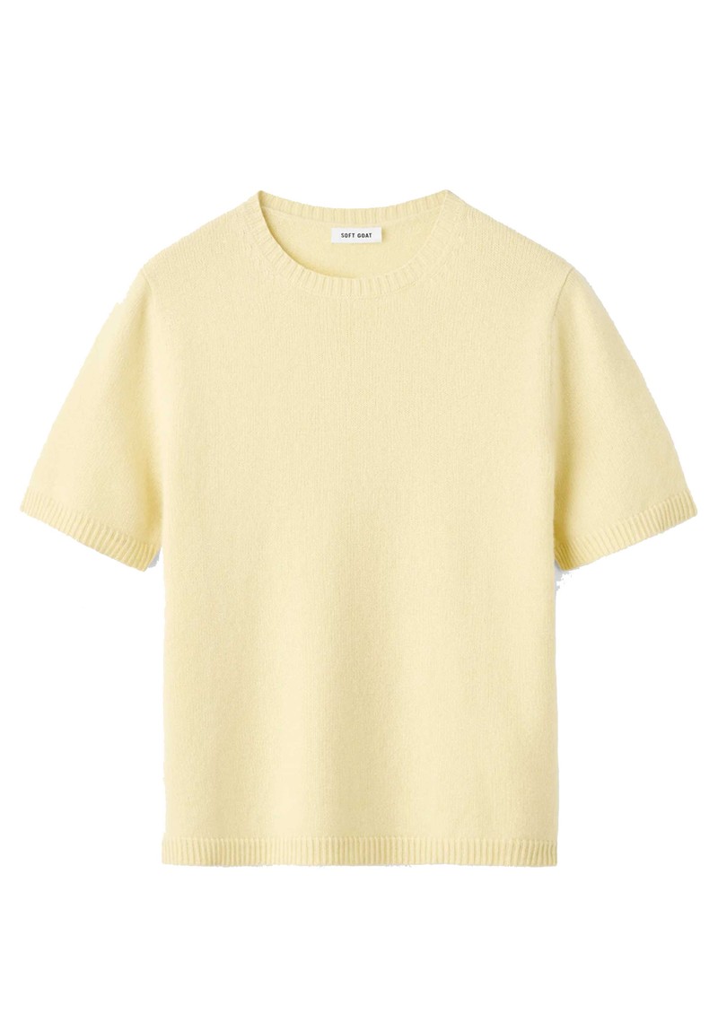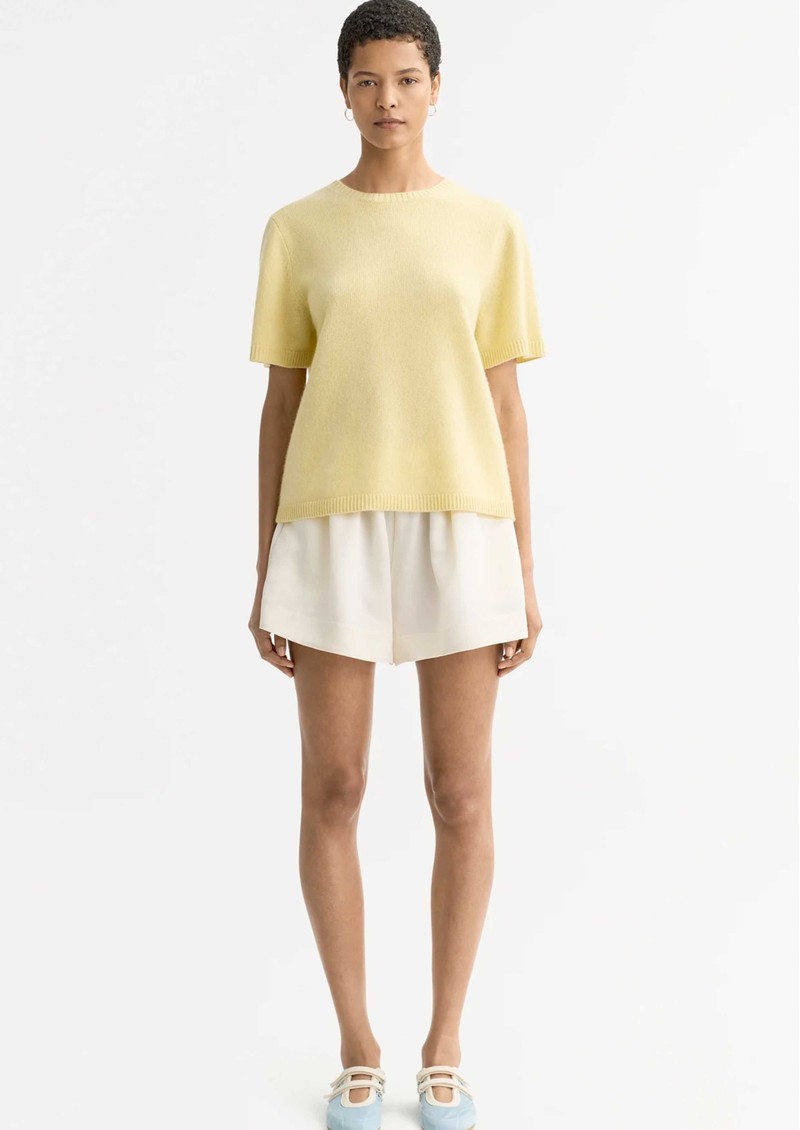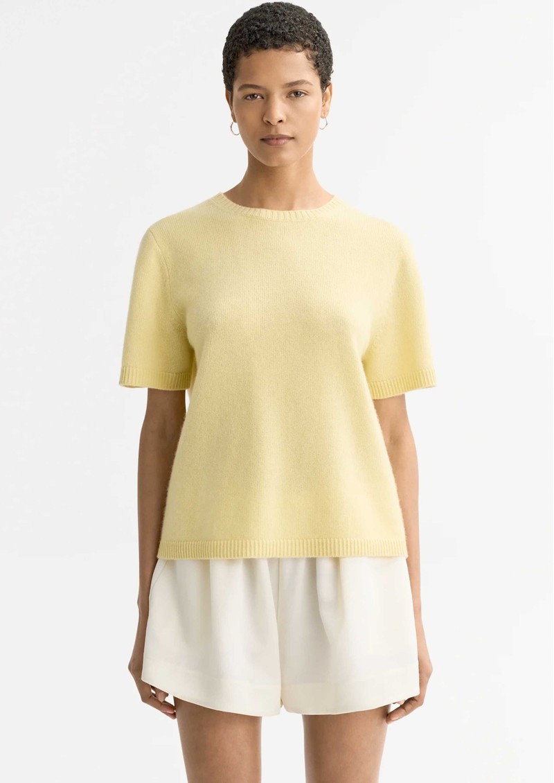 Honeydew Soft Goat oversized T-shirt crafted from 100% cashmere for ultimate softness and luxurious feel. Featuring a rounded neckline and short sleeves, it offers relaxed, easygoing style with elevated comfort.