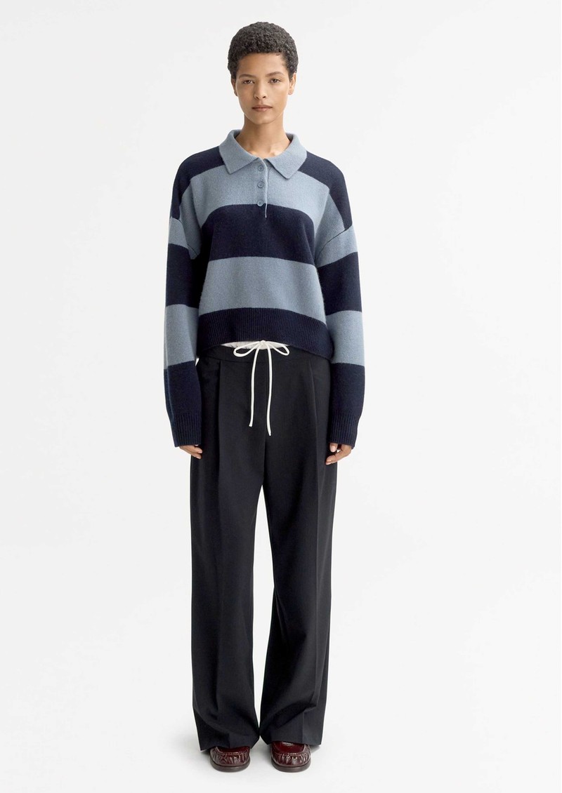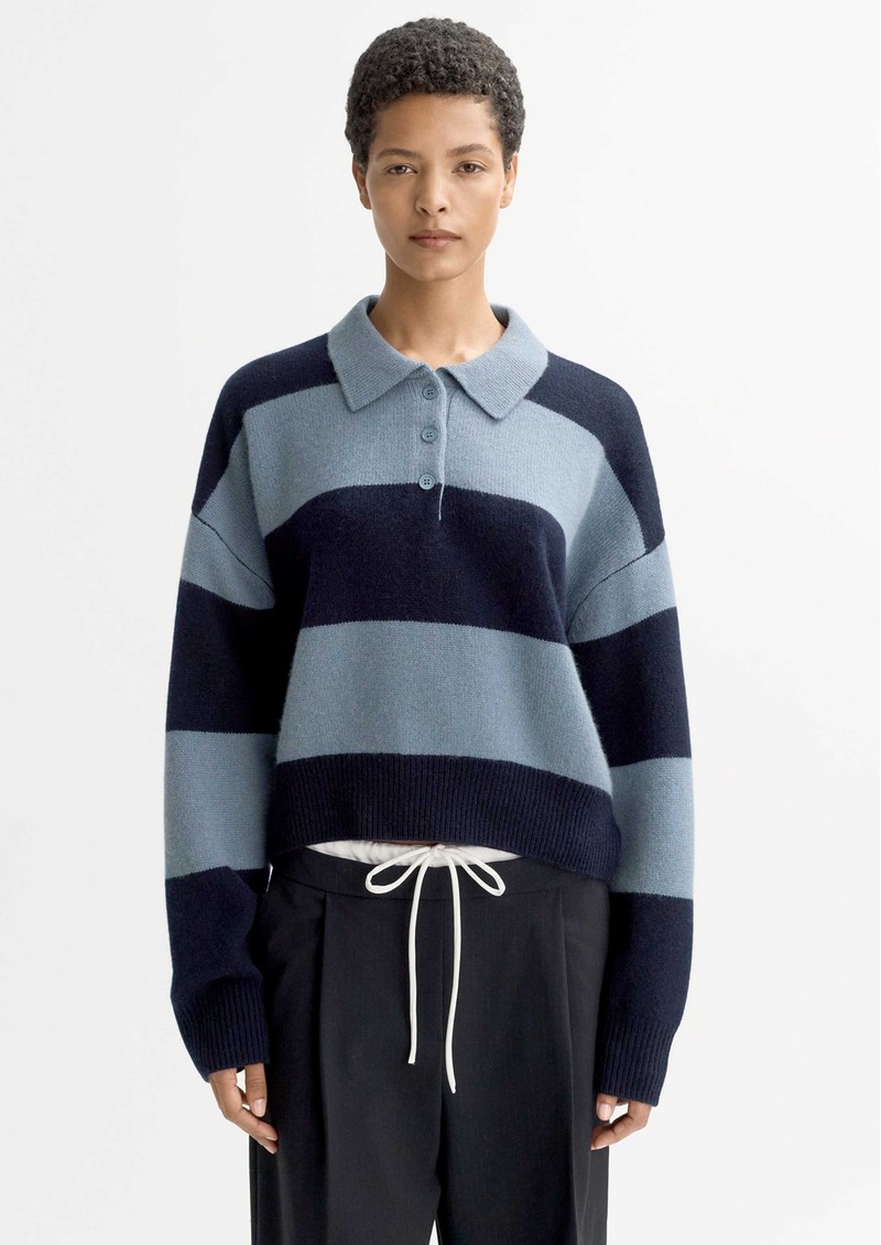 The Soft Goat Striped Polo Shirt is a luxurious, chunky-knit design crafted from 100% cashmere. With its classic pointed collar, buttoned neckline, and dropped shoulders, it offers an effortless blend of sporty refinement and cosy elegance.