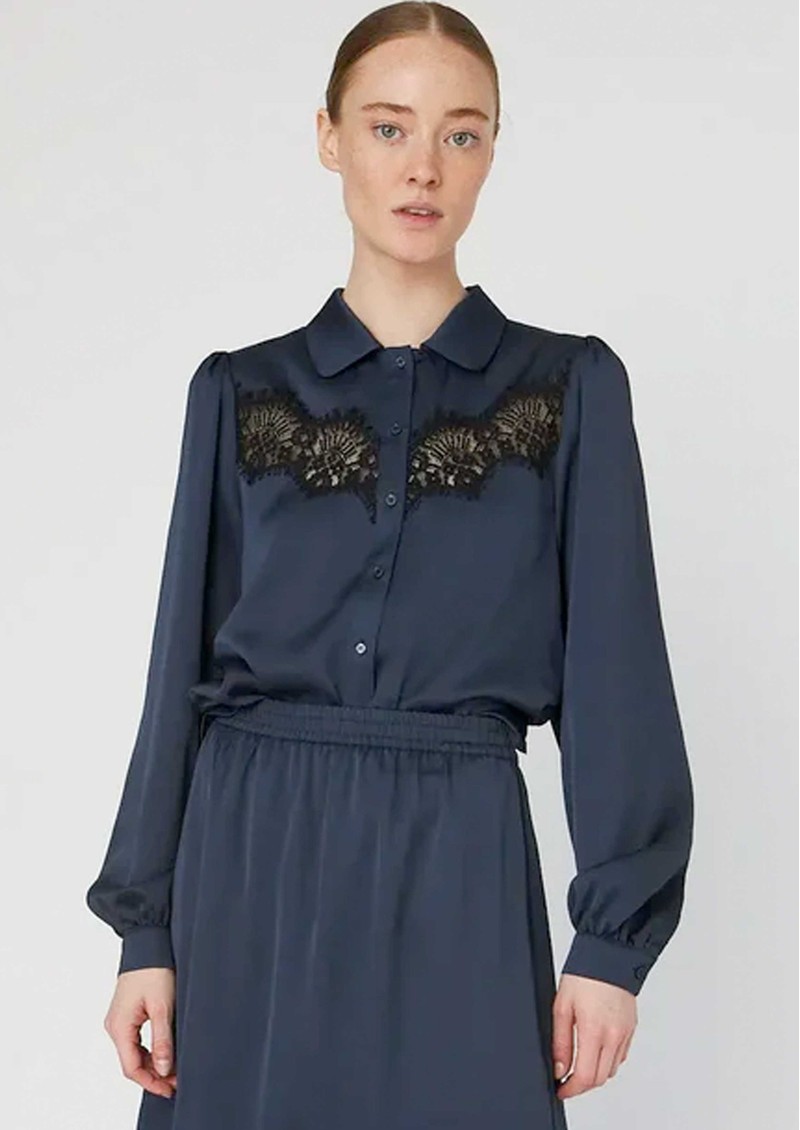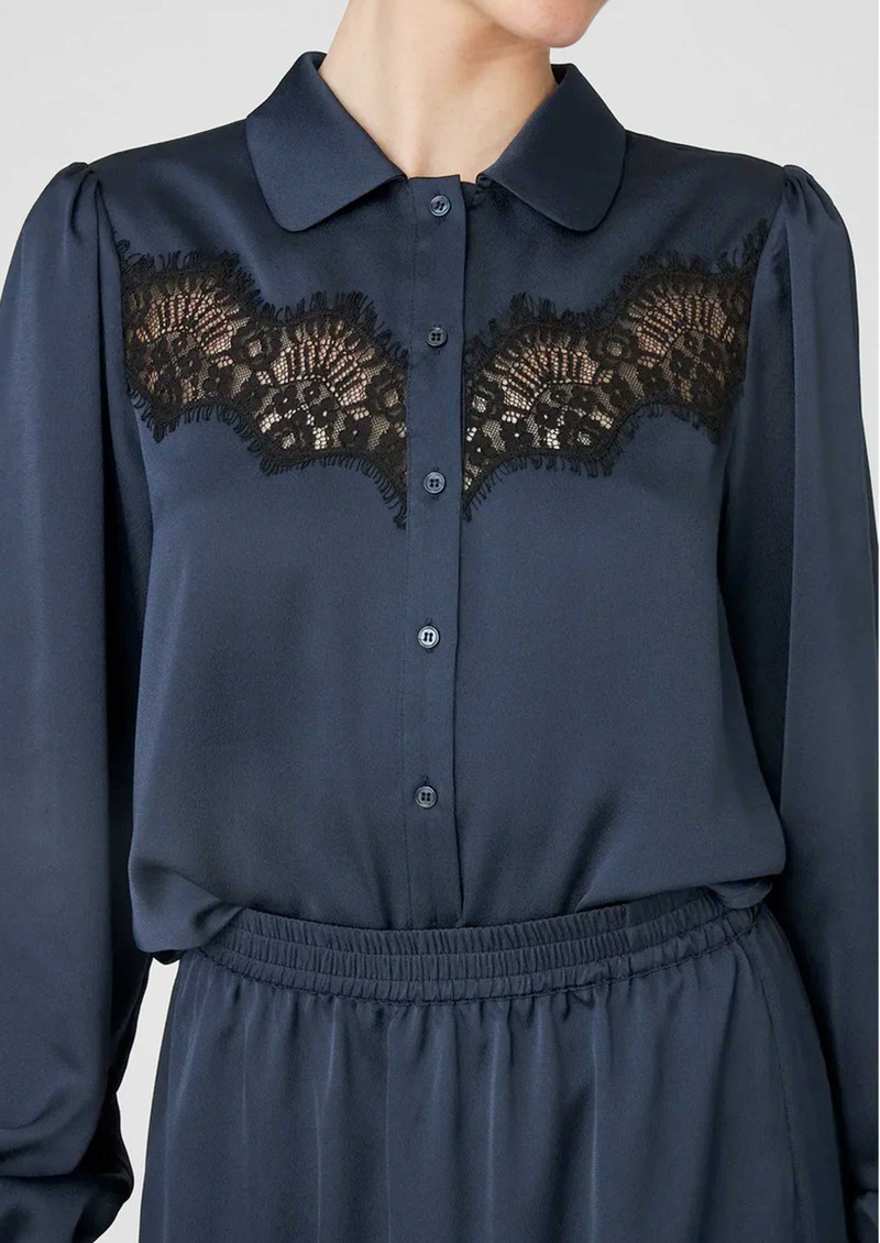 STELLA NOVA Delicate Lace Shirt - Ultra Navy