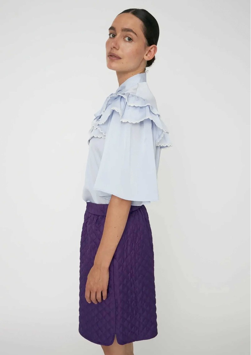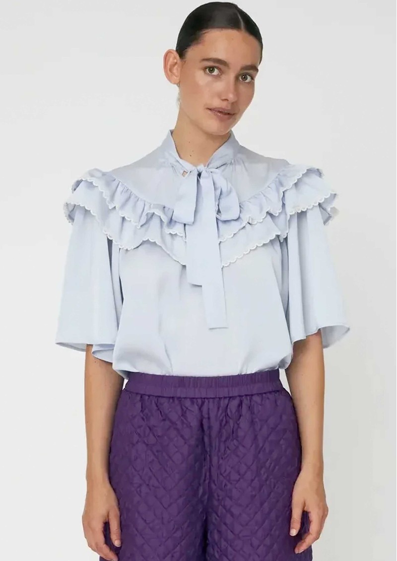 STELLA NOVA Loose Blouse with Frills - Dust Blue