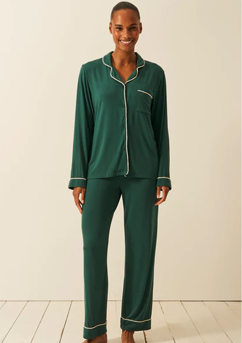 For the most luxurious night’s sleep, the Stripe & Stare long pyjama set in Alpine Green is the ultimate choice, featuring a relaxed fit, button-up top, elasticated waist trousers, and contrast piping details-perfect for indulgent lazy mornings, slow Sundays, or elevating your night-time routine.