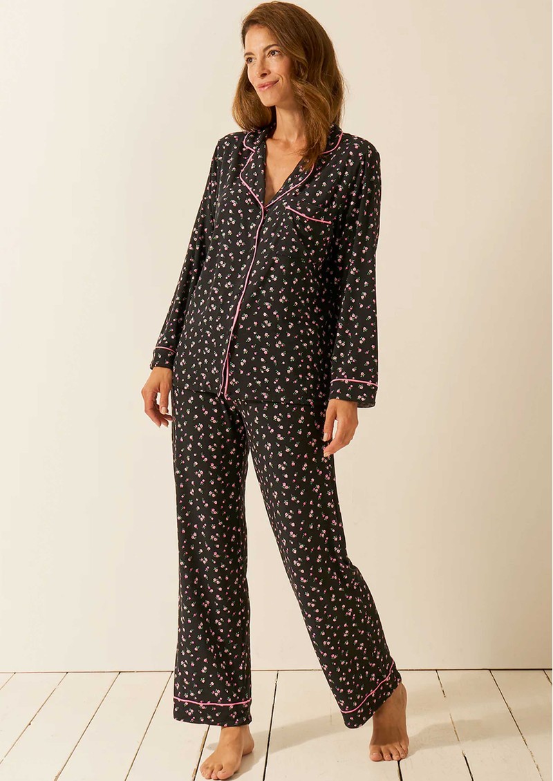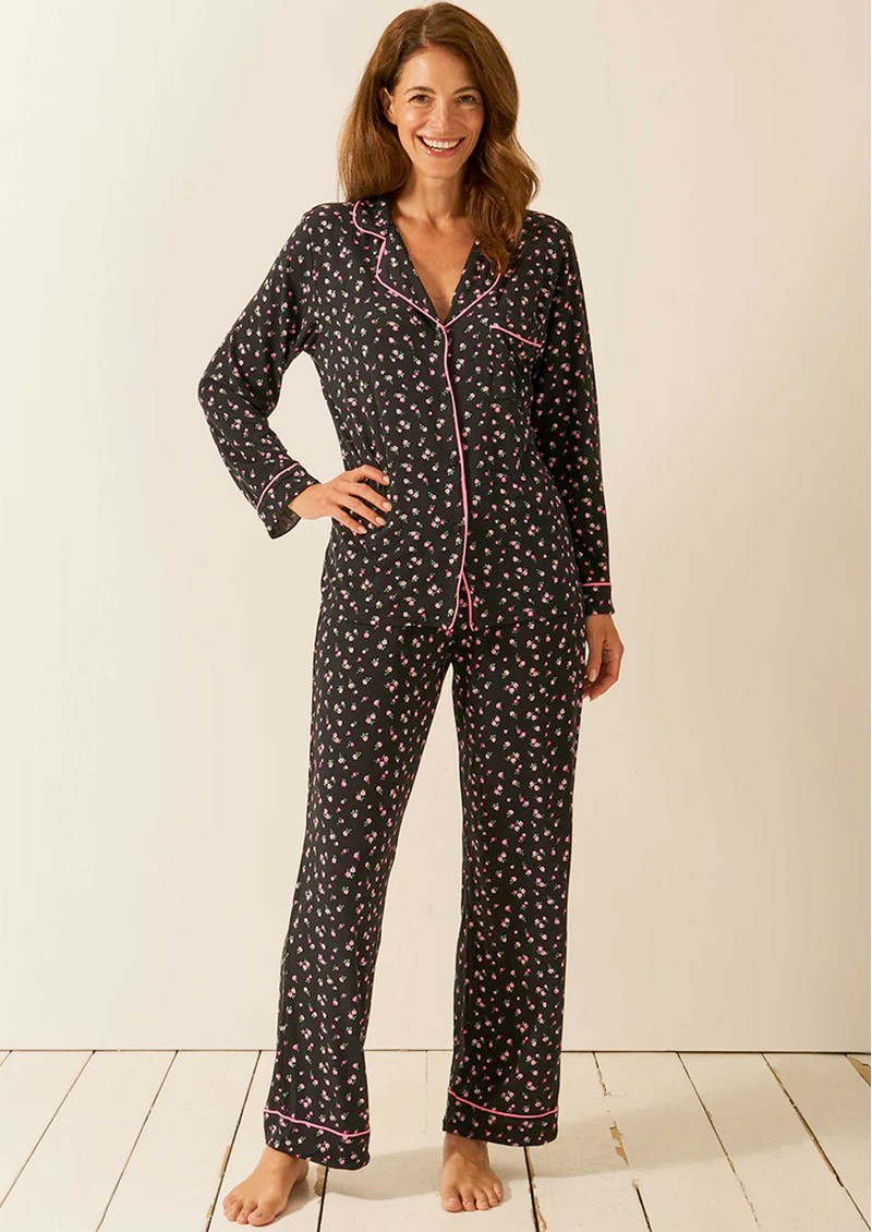 For the most luxurious night’s sleep, the Stripe & Stare long pyjama set in Rosebud is the ultimate choice, featuring a relaxed fit, button-up top, elasticated waist trousers, and soft piping details-perfect for indulgent lazy mornings, slow Sundays, or elevating your night-time routine.