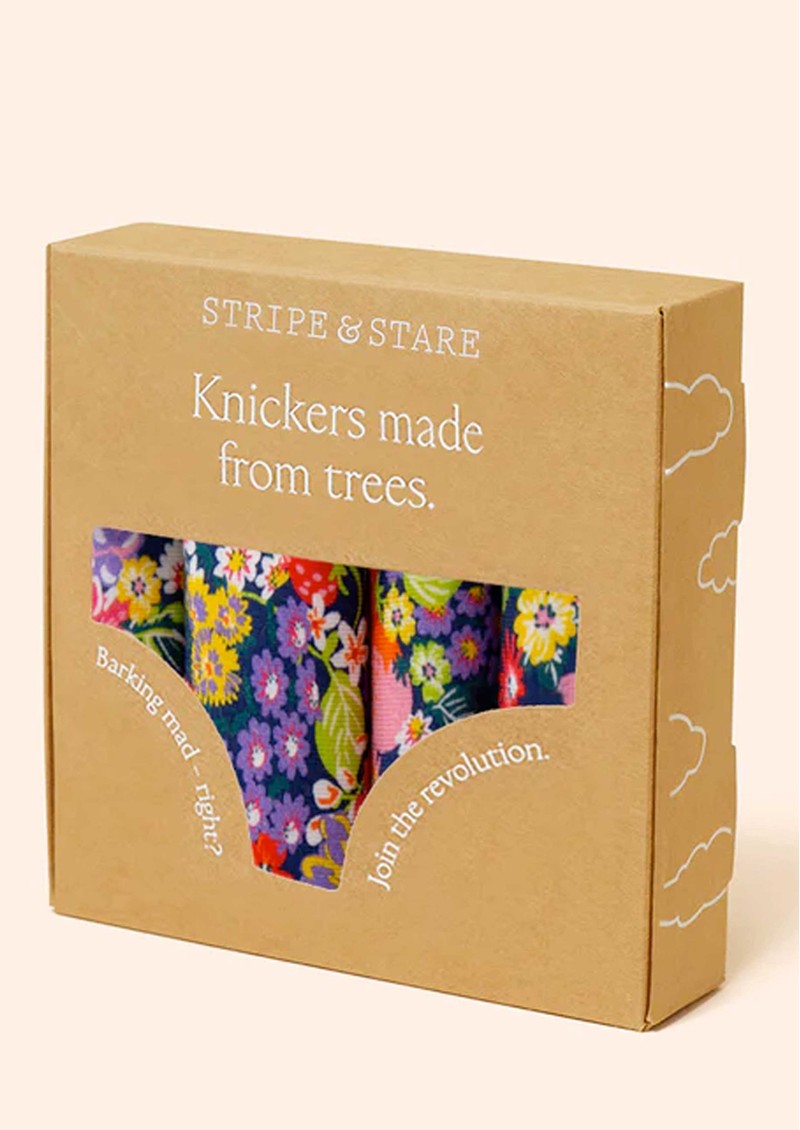 Give your lingerie drawer a fresh update with the Stripe and Stare Brief Set of 4 in Botanic Bloom, combining delicate ditsy prints with subtle lace-edge accents for a playful, feminine finish. Crafted from silky-soft, biodegradable TENCEL™ Modal, each brief offers lightweight comfort, flat-locked seams for a smooth fit, and sweet bow detailing, all presented in a beautifully gift-boxed set that champions sustainability.