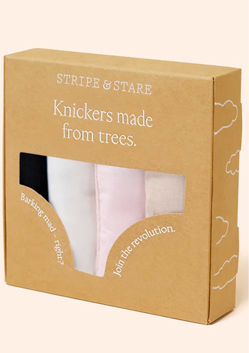 Update your everyday essentials with the Stripe and Stare Brief Set of 4 in Sand, offering a pack of soft, basic colourways perfect for effortless daily wear. Crafted from silky-soft, biodegradable TENCEL™ Modal, each brief ensures comfort, smooth flat-locked seams, and subtle bow detailing, all presented in a gift-ready box with sustainability in mind.