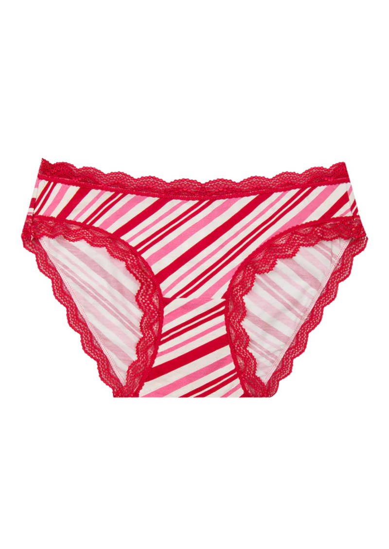 Bring a touch of fun to your lingerie collection with these ultra-soft Stripe & Stare single briefs in Black Cherry, crafted from eco-friendly TENCEL™ Modal. Designed with a playful stripe pattern and delicate lace edging, they offer a flawless fit with no lines or riding up, beautifully gift-boxed and supporting tree planting with every order.