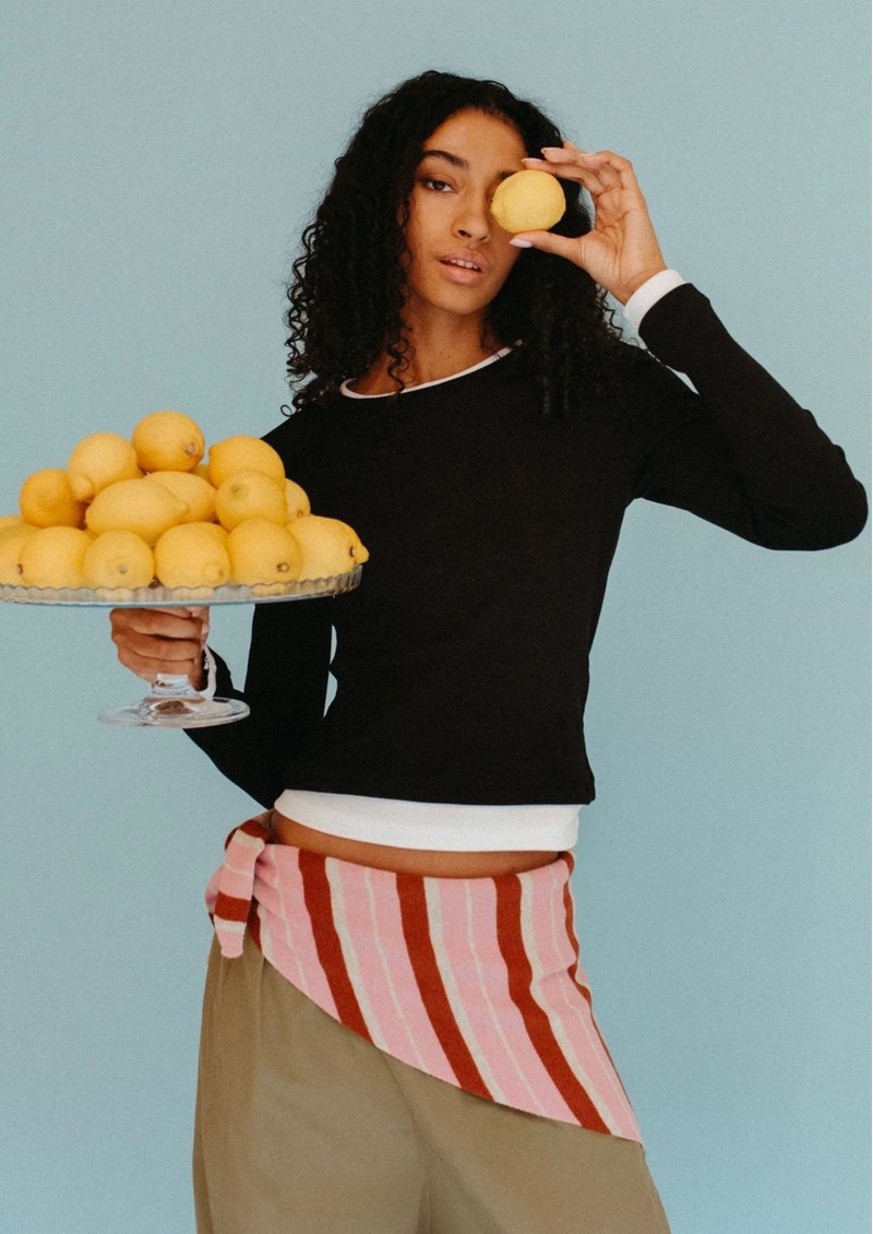 We'll be styling this TBCo Triangle Scarf in Pink Rust in true Scandi style, with a Ganni top, a pair of our best-selling Citizens of Humanity jeans, and a pair of Alohas trainers to nail that cool-girl look