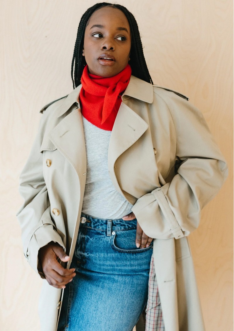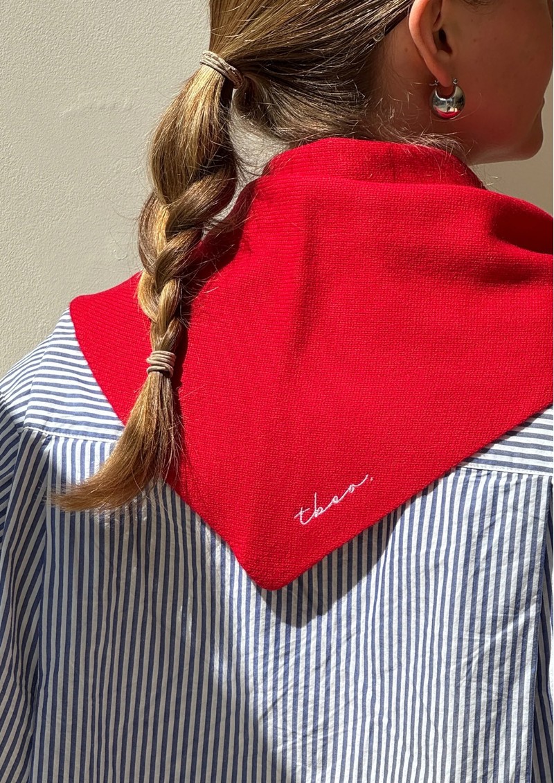 We'll be styling this TBCo Triangle Scarf in Red in true Scandi style, with a crisp Day Birger Et Mikkelsen shirt a pair of our best-selling Citizens of Humanity jeans, and a pair of Alohas trainers to nail that cool-girl look