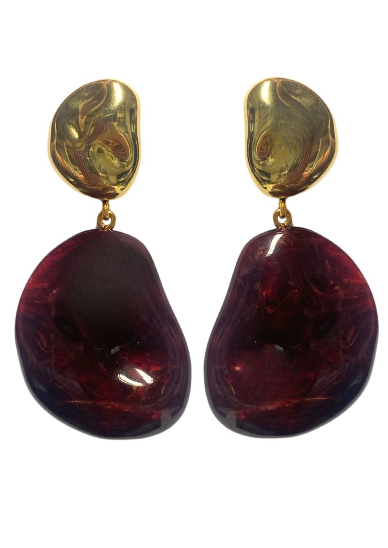 Complete your new season outfit with a pair of Vanessa Baroni Double Nugget earrings. This gorgeous Bordeaux Marble colourway is the perfect addition with its unique shape and striking size.