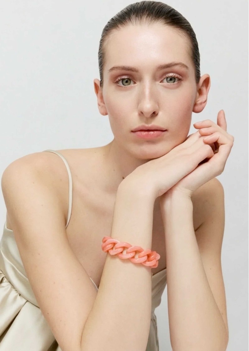 Introducing the Vanessa Baroni Flat Chain Bracelet in watermelon marble, a bold yet playful piece that brings a fresh burst of colour to any jewellery stack. Crafted in Italy, it features lightweight sculptural links with a smooth marbled finish and a gold-tone clasp, striking the perfect balance between statement style and everyday ease.