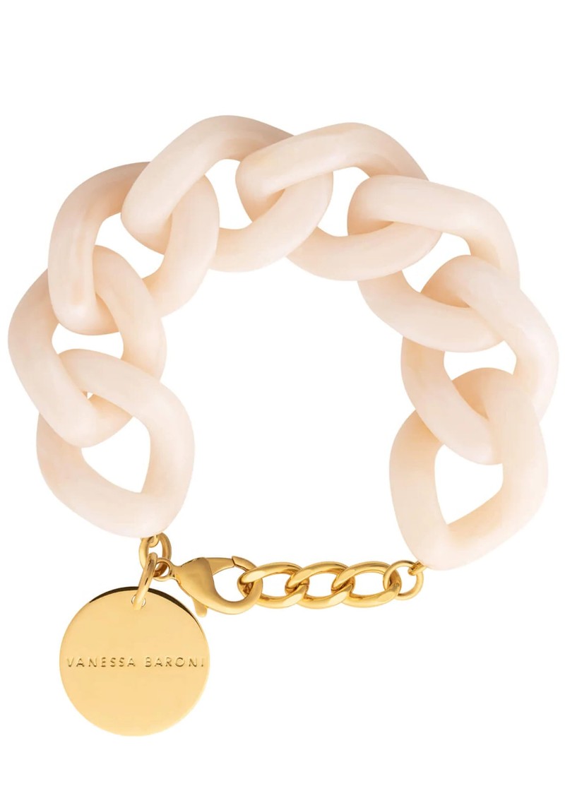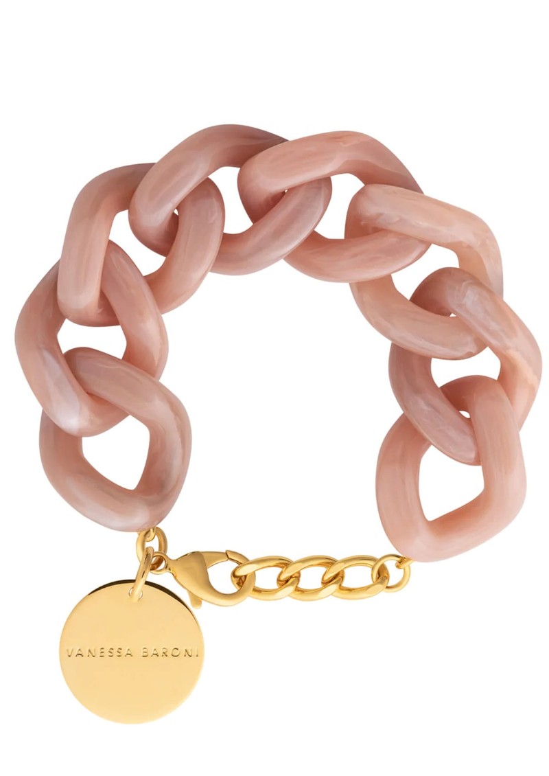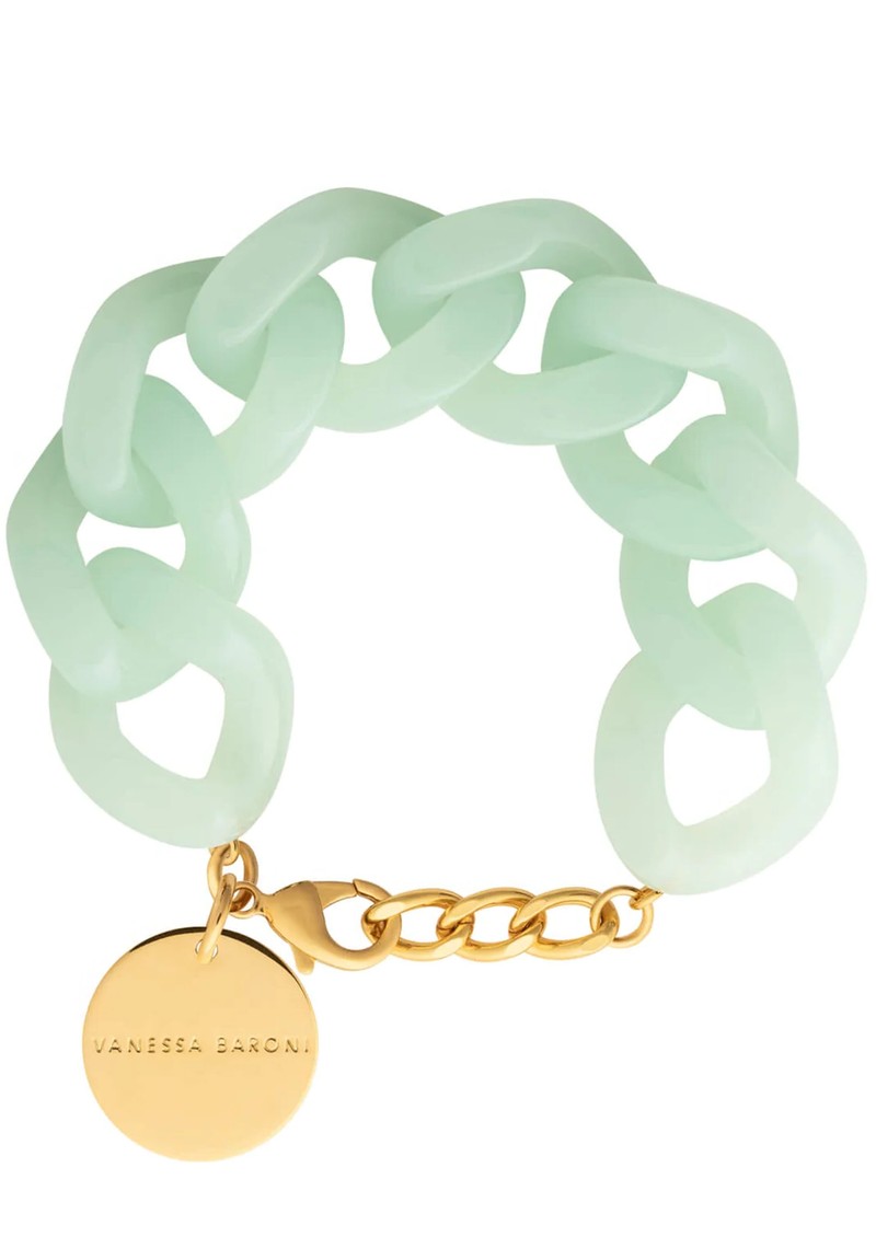 This Vanessa Baroni bracelet is made from lightweight acetate links with gold-plated brass hardware, finished with a 24-carat gold electroplated layer