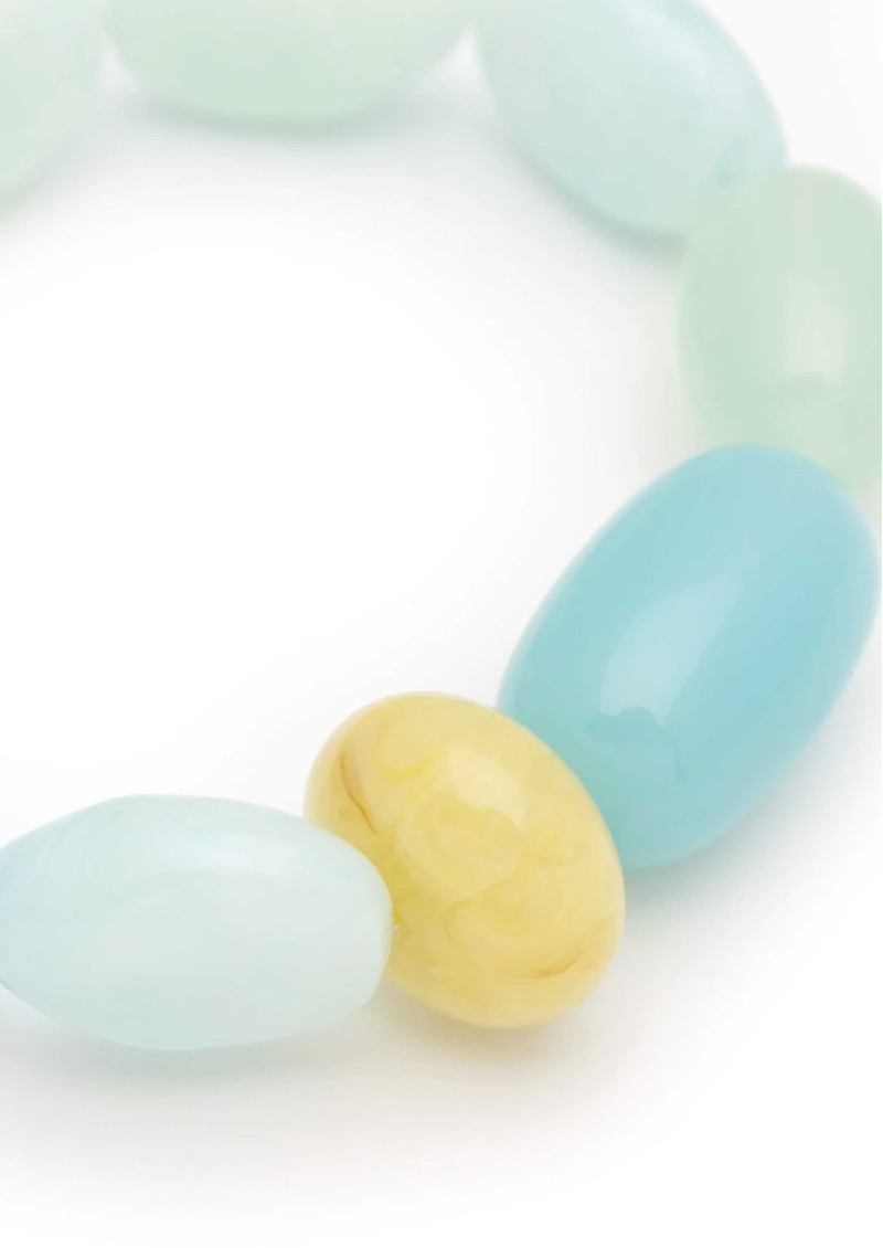 This Vanessa Baroni bracelet is made from lightweight methacrylate with a flexible elastic nylon rubber band for comfort and movement.
