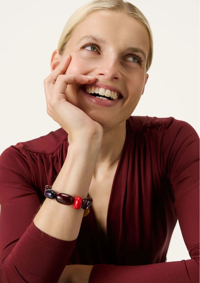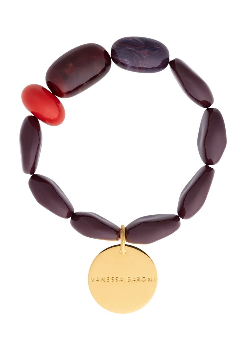 This Vanessa Baroni Unique Flex Bracelet in Aubergine Marble creates a stylish statement with its brown and red toned beads and unique organic shapes. The ultimate addition for a stack this Vanessa Baroni bracelet is the perfect staple to finish off your new season looks.
