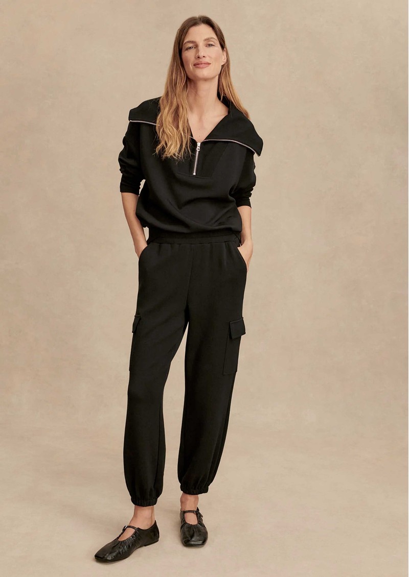 Pair your Varley Cargo Pants in black with the matching Varley top for a sleek, coordinated look. Elevate the outfit with Pavement loafers and a Lescarf scarf for a polished, stylish finish.