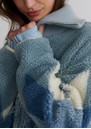 The Varley Franca Sherpa Jacket in Ashley Blue brings Alpine-inspired charm to your wardrobe with its intricate diamond jacquard pattern. Designed in a relaxed silhouette, it features a dropped shoulder, curved hem, and ribbed collar and pockets, offering cosy warmth with effortless style.