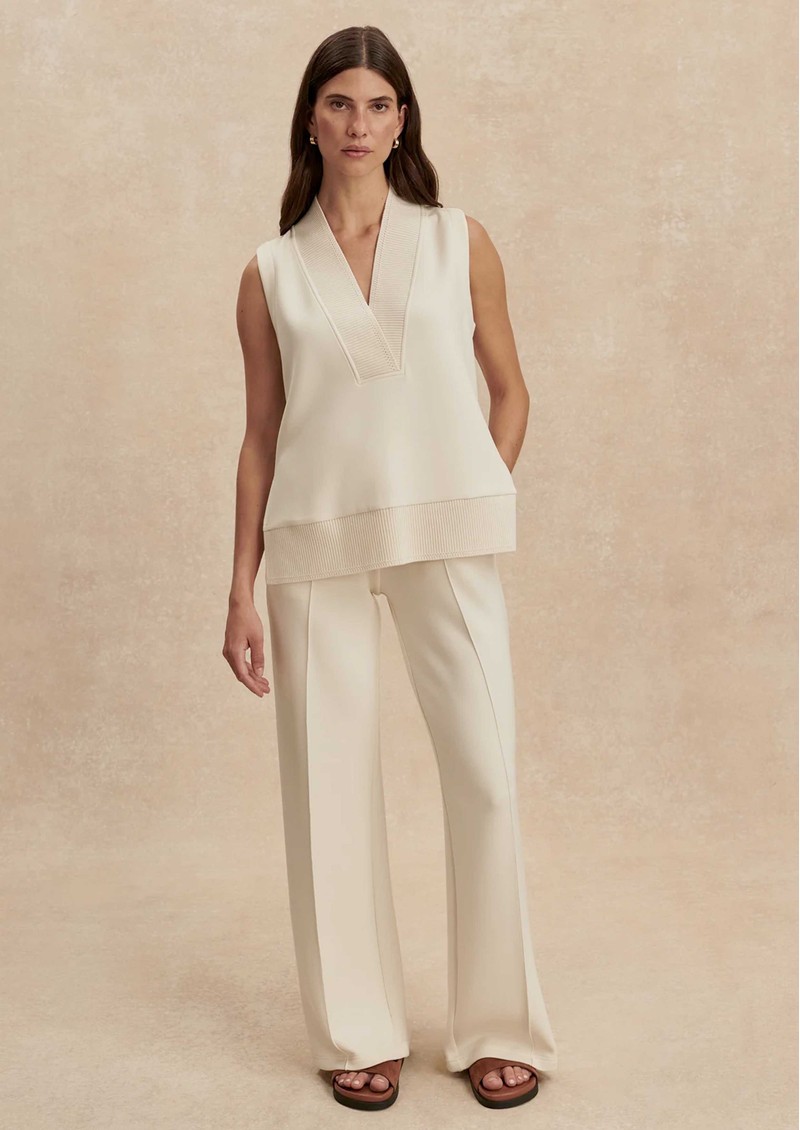 Refresh your off-duty wardrobe with the Varley Freida tank in pristine - a clean, contemporary piece designed for both comfort and understated style. Made from Varley’s signature DoubleSoft fabric, this longline V-neck design is finished with delicate pointelle trim and subtle side splits for a modern, elevated look.