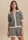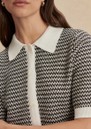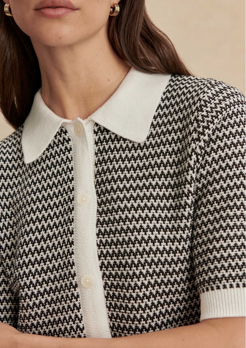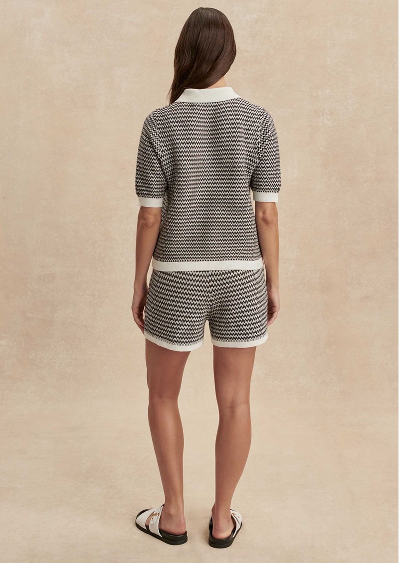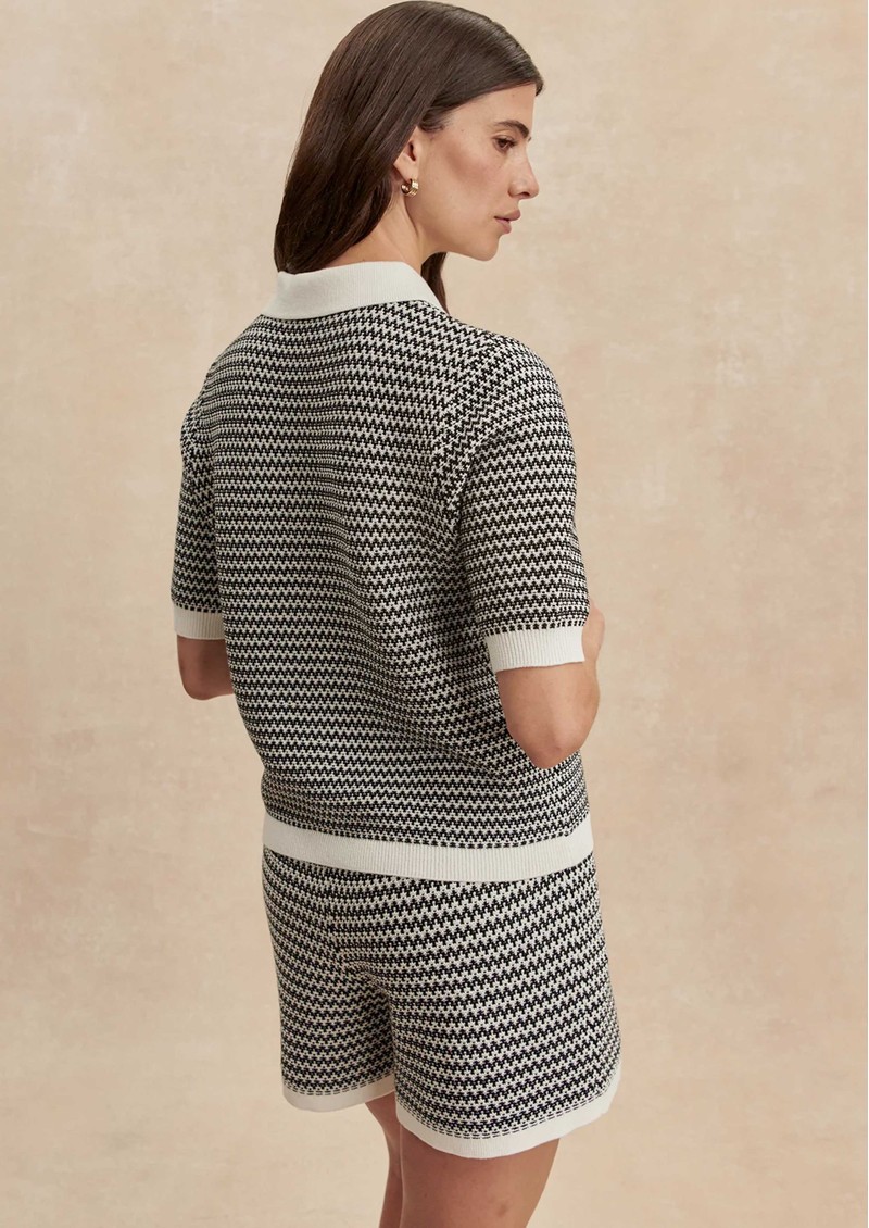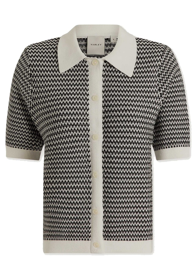 Elevate your everyday knitwear with the Varley Gaelle polo knit top in white/black - a modern take on a timeless silhouette. Crafted from 100% cotton, this lightweight button-down polo features a bold zig-zag pattern for a fresh, contemporary edge that works effortlessly across seasons.