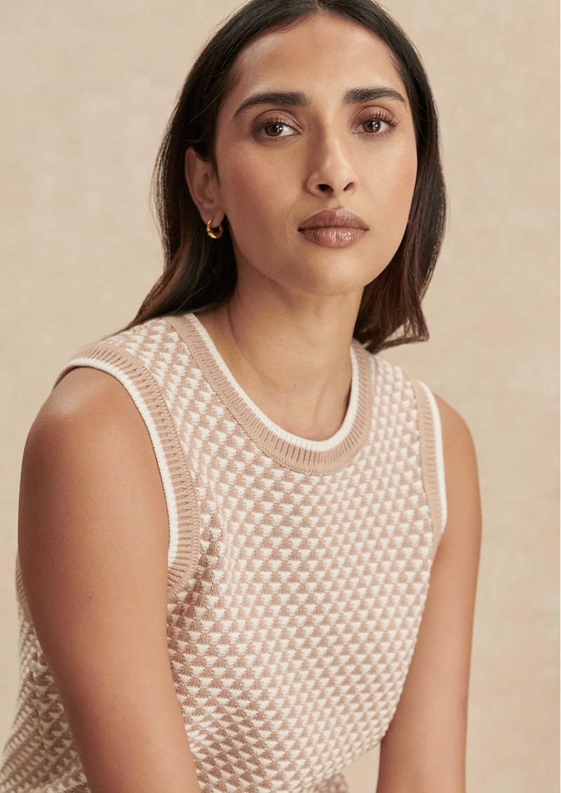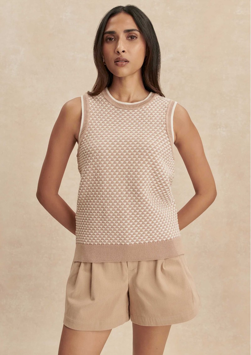 Elevate your casual wardrobe with the Varley Jenson Stitch Knit Tank in Light Taupe, a sleeveless knit top with a bold two-colour stitch for a modern, textured look. Made from soft 100% cotton with a crew neckline and ribbed edges, it’s perfect for effortless weekend styling or layering.