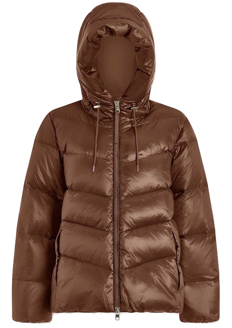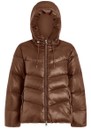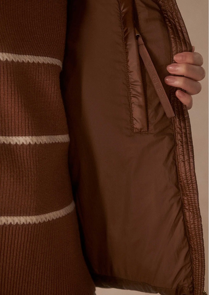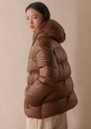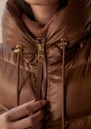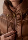 The Varley Madelina Lightweight Jacket in Cocoa Dust combines warmth and elegance in a classic mid-length puffer silhouette. Crafted from Super Light Ripstop fabric with a subtle metallic sheen, it features premium down insulation, a deep hood, internal cuffs, and adjustable toggles for a lightweight yet cosy fit.