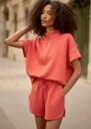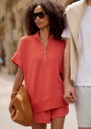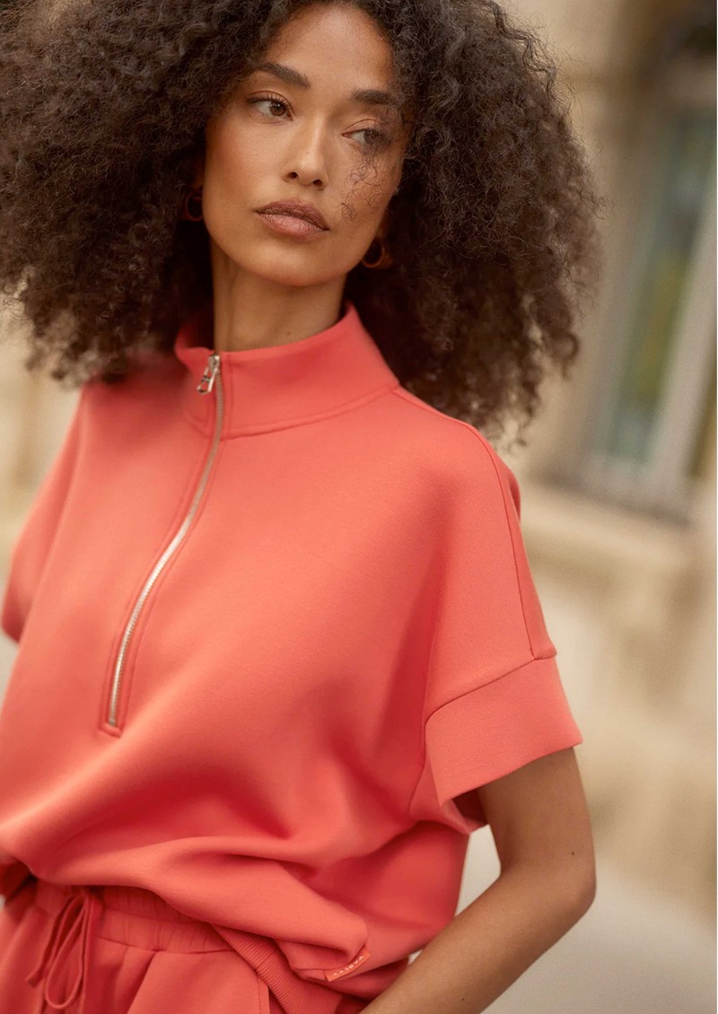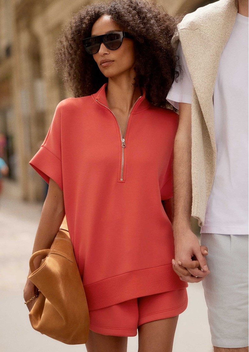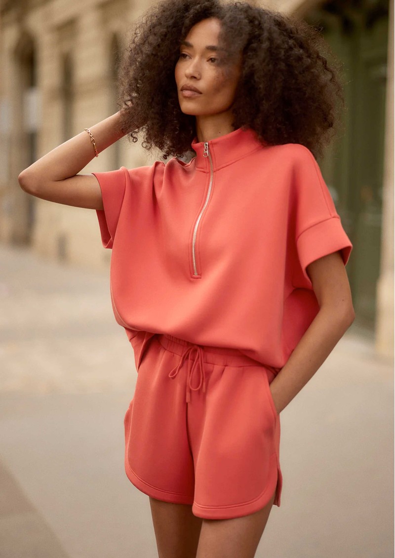 Add the Varley Ritchie short sleeve sweat in summer fig to your everyday rotation - a relaxed yet refined staple crafted in signature DoubleSoft fabric for effortless, year-round wear. Designed with a mock neck, half-zip detail, and easy short sleeves, it delivers a modern, laid-back silhouette with a polished finish.