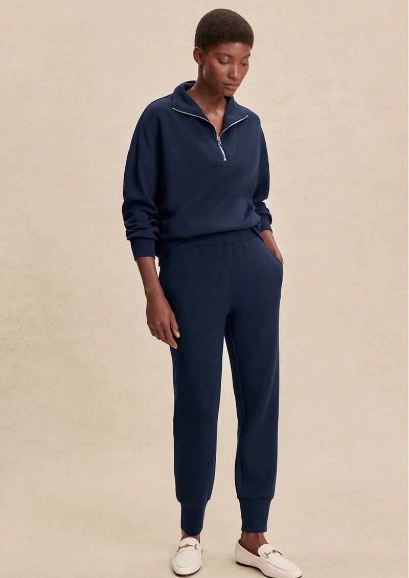 Style your Varley Sweatpants in navy with the matching Varley top for a coordinated, modern look. Complete the outfit with Veja trainers and a Ganni hat for a casual, on-trend finish.
