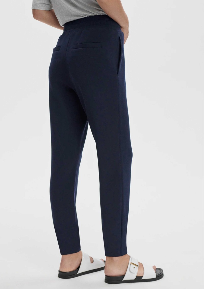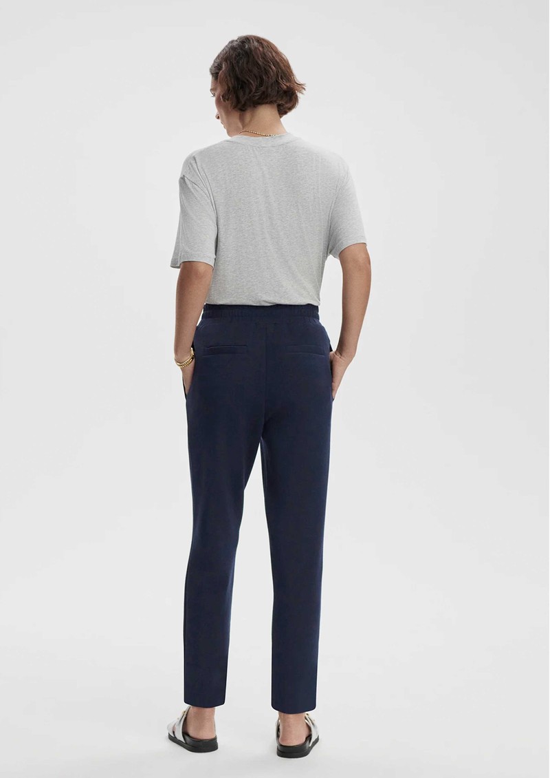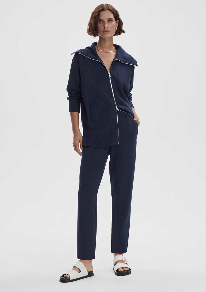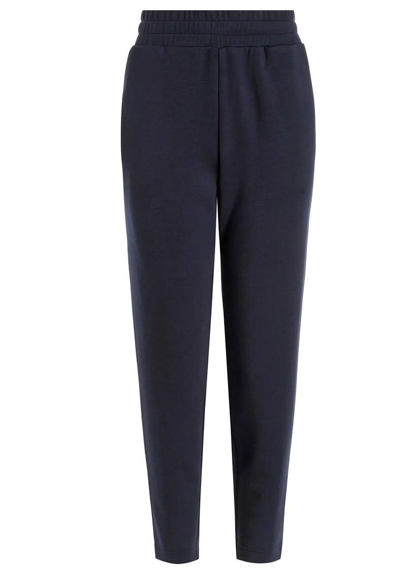 The Varley Slim Pant 27.5 in Navy offers a sleek, tapered silhouette crafted from our ultra-soft DoubleSoft® fabric, combining comfort with contemporary style. Perfect for lounging or casual outings, the ribbed waistband and tailored fit ensure a secure, flattering look every time.