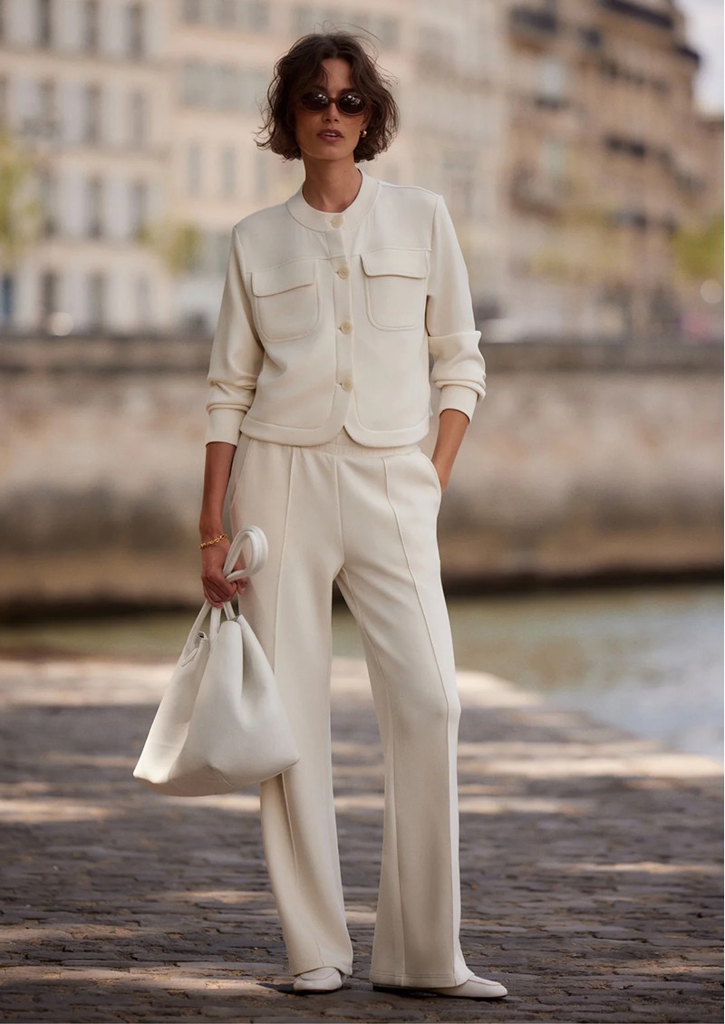 Pair your Varley wide-leg trousers with a Varley knit and Varley sweat jacket, finishing the look with Alohas trainers for a relaxed yet polished outfit.