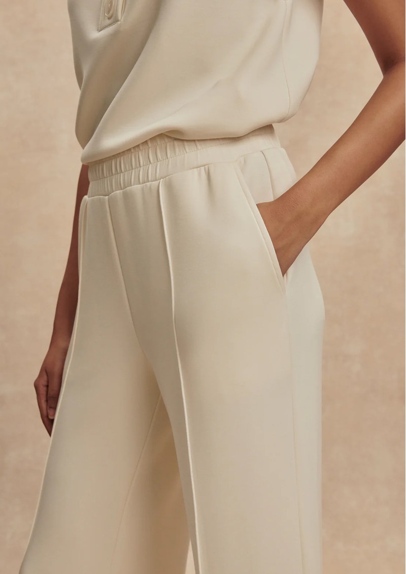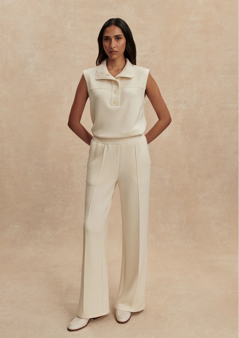 Meet the Varley Wide-Leg Sweatpant in pristine, a laid-back yet polished staple designed for effortless everyday style. Crafted from soft DoubleSoft® fabric, these joggers feature a high-rise waist, relaxed wide-leg silhouette, subtle pintuck accents, and an elasticated drawstring waistband for ultimate comfort and a tailored feel.