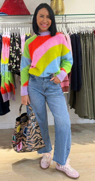 The Essentiel Antwerp Jolor Intarsia Knit sweater is the perfect way to add a touch of fun and pop of colour to your new season outfits. Featuring playful brigh...