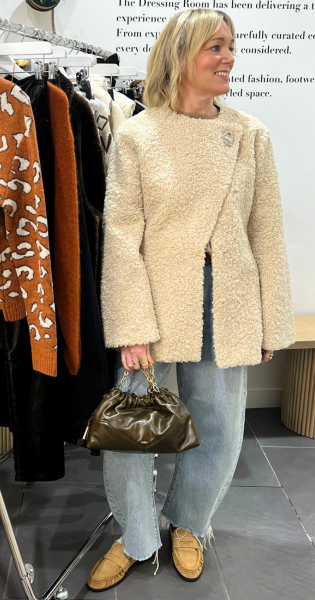 Get cosy this season with chunky knits, faux fur and rich caramel hues. Deryane looks fabulous in the new season Day Birger et Mikkelsen coat, teamed back with some trusty Miro Jeans, a lovely knit, and a pair of Pavement loafers.