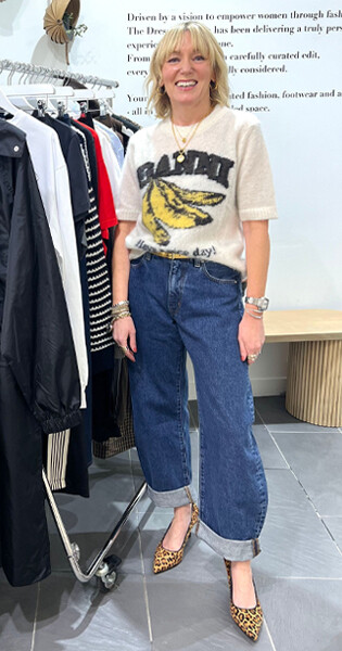 We love Ganni for their playful motifs, and this drop is no exception. We are loving the fruity banana graphic dotted over this seasons drop. Special shout out to the short sleeve knit - Deryane has teamed this back with a pair of Frame Bubble Jeans, some sleek heels and stacks of Rachel Jackson and Roxanne Assoulin jewels.