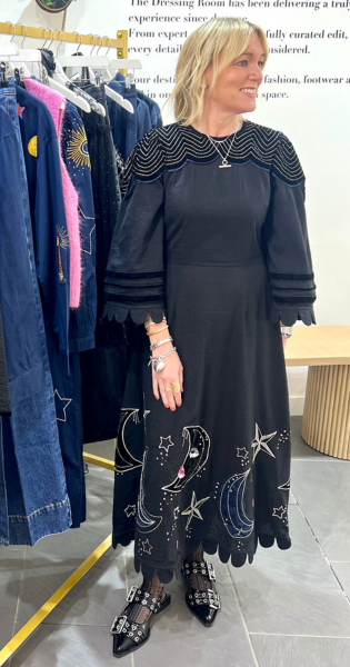 Introducing Stella Nova's fabulous Midnight Wardrobe collection, where it's all about contrasts. The feminine against the masculine, classic against the playful - all of these frame a new story. Their iconic embroidered artworks and humorous approach to decoration are the key in Stella Nova collections. See how Deryane has styled her favourite piece below.